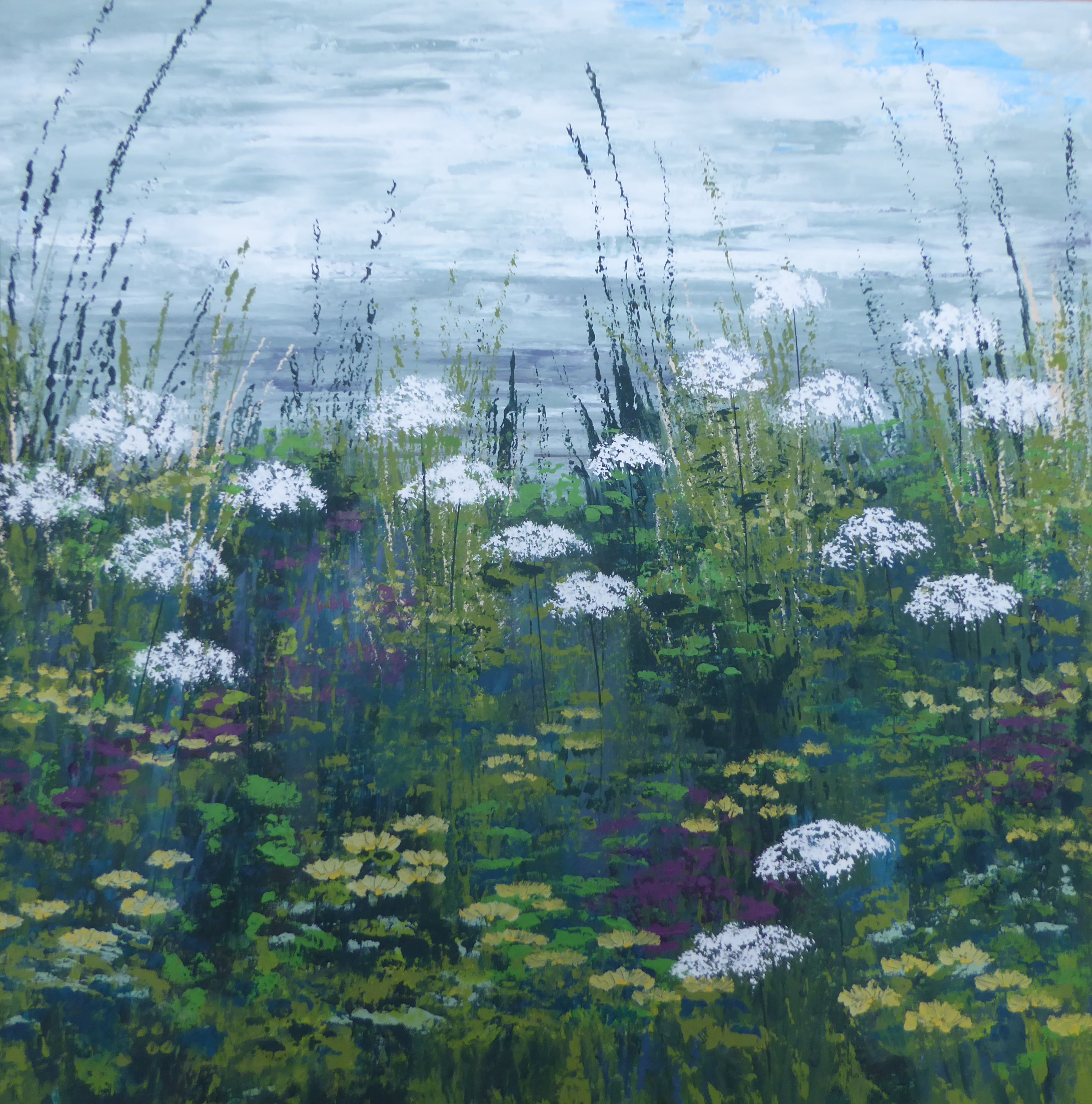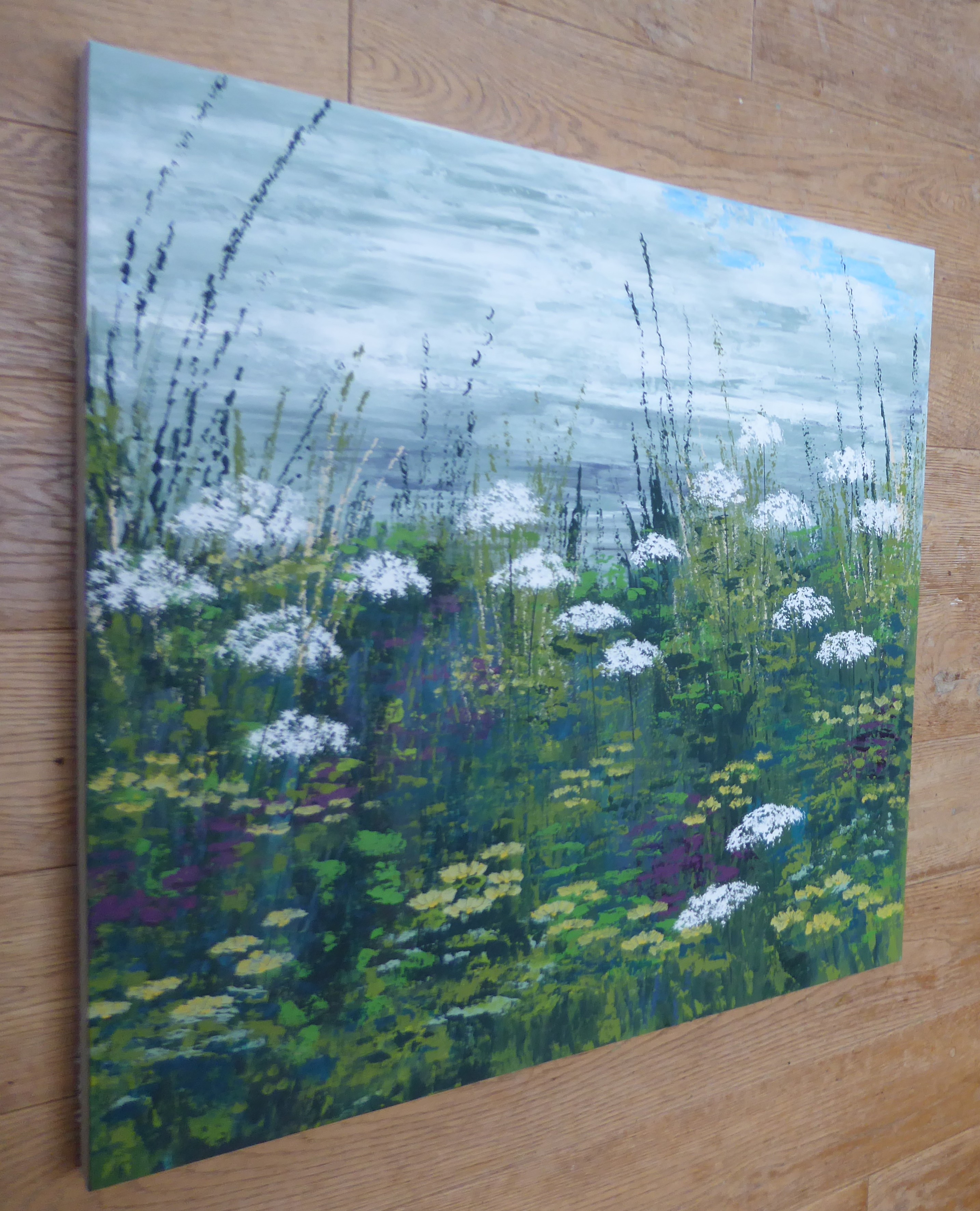 Acrylic on canvas, varnished, strung on the back, 60cm x 60cm x 3cm, signed on the back