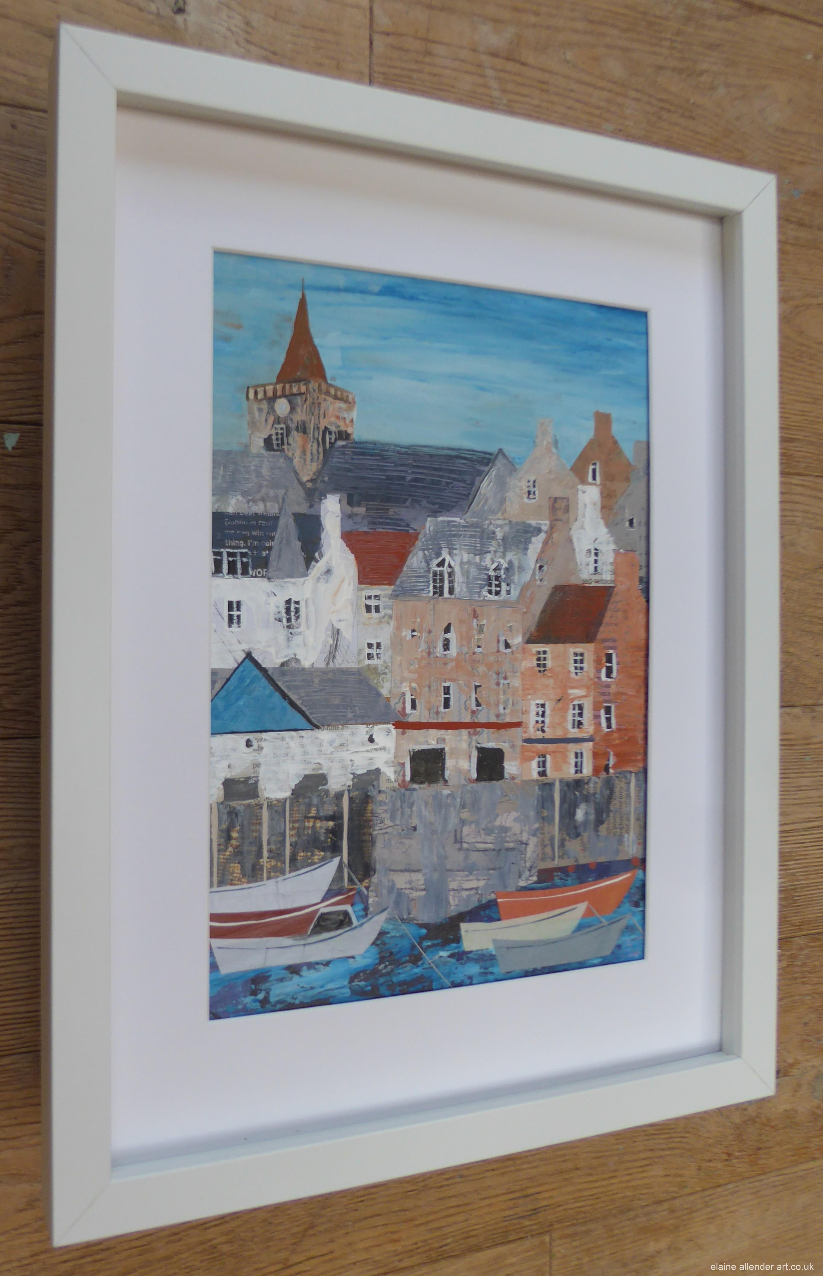 Mixed media, varnished, mounted and framed. 30cm x 40cm. Signed on the back.