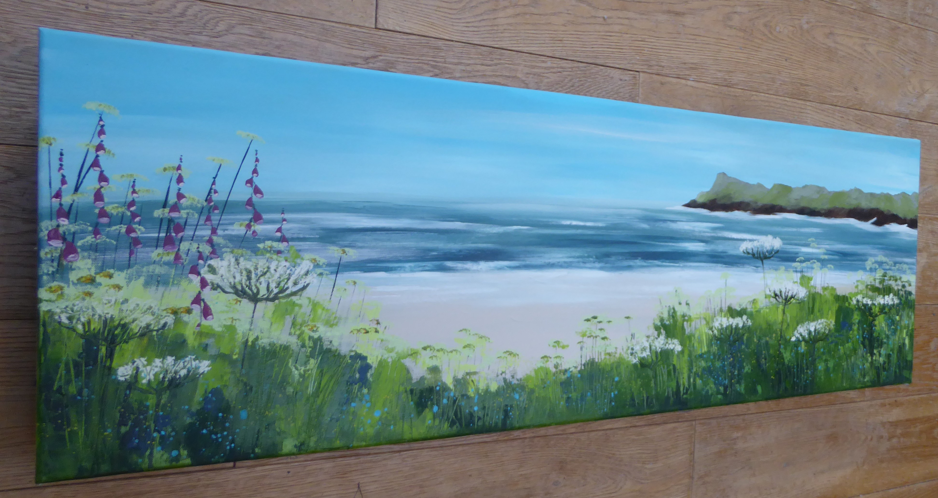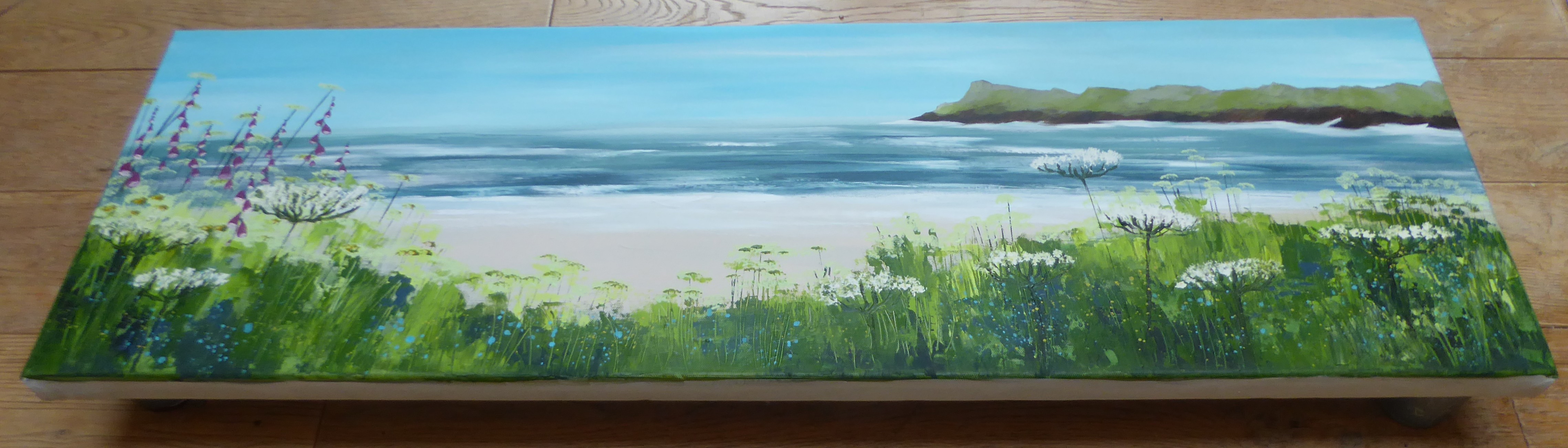 Acrylic on canvas, varnished, strung on the back, signed on the back, 90cm x 30cm