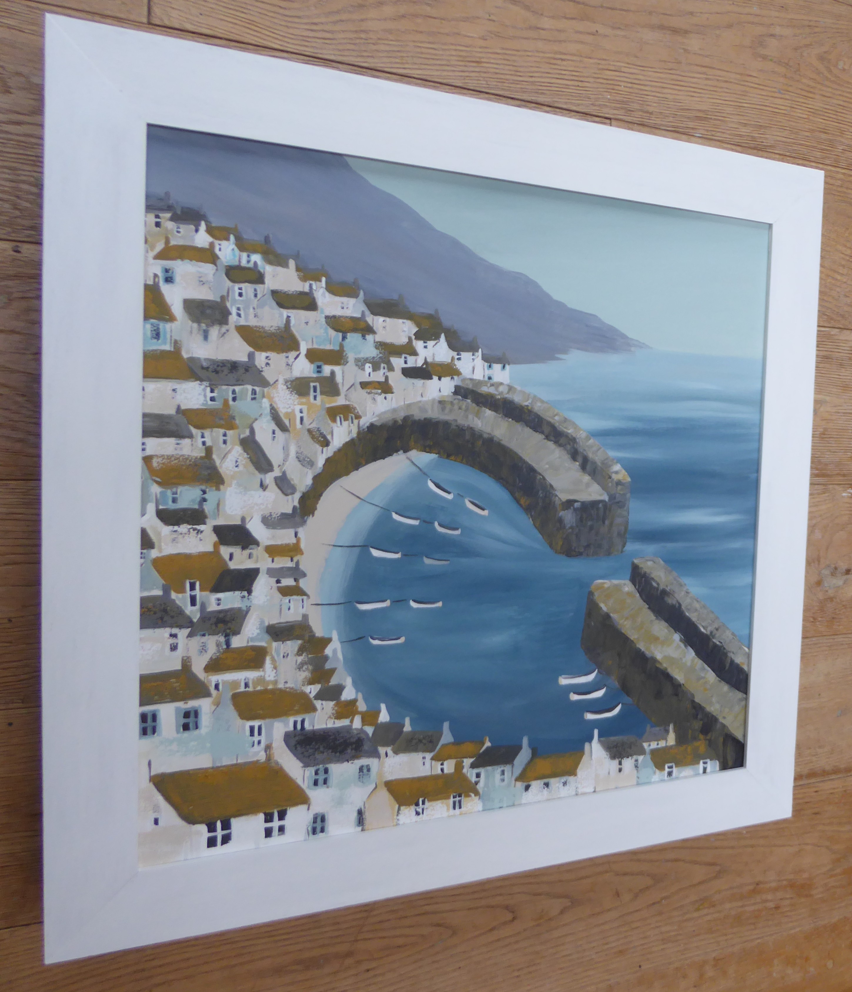 Acrylic on board, varnished, white wood frame, strung on the back, signed on the back, 48cm x 48cm