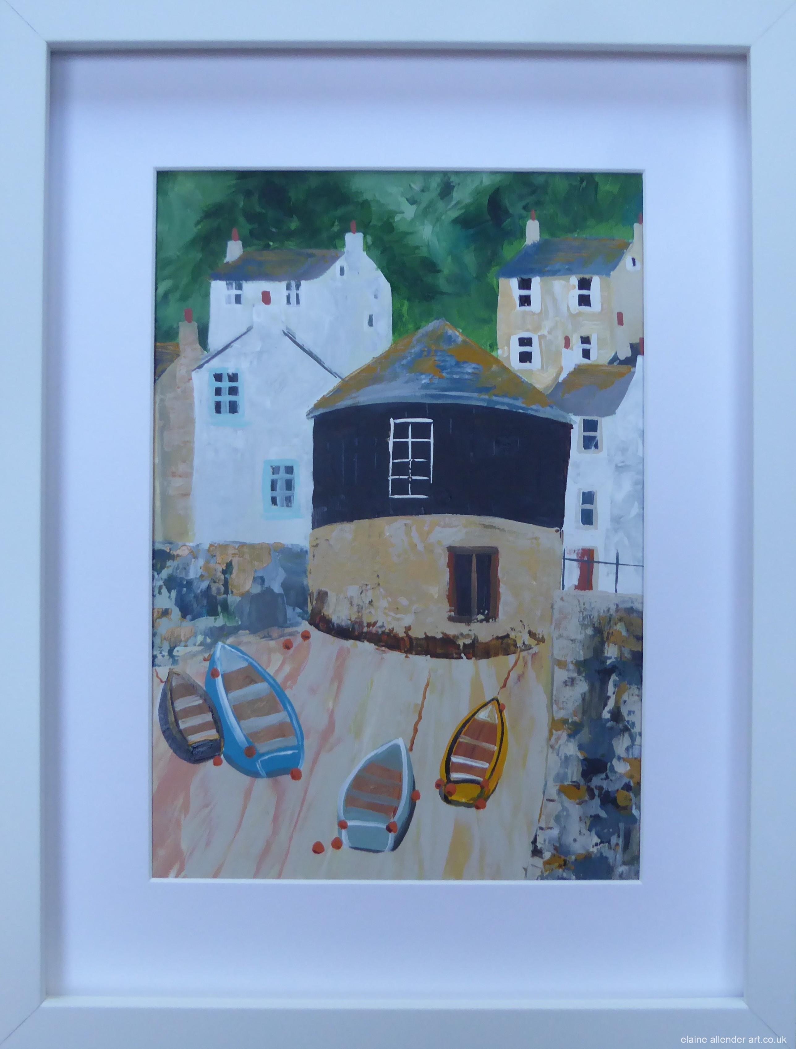 Acrylic, varnished, mounted and framed. 30cm x 40cm. Signed on the back.