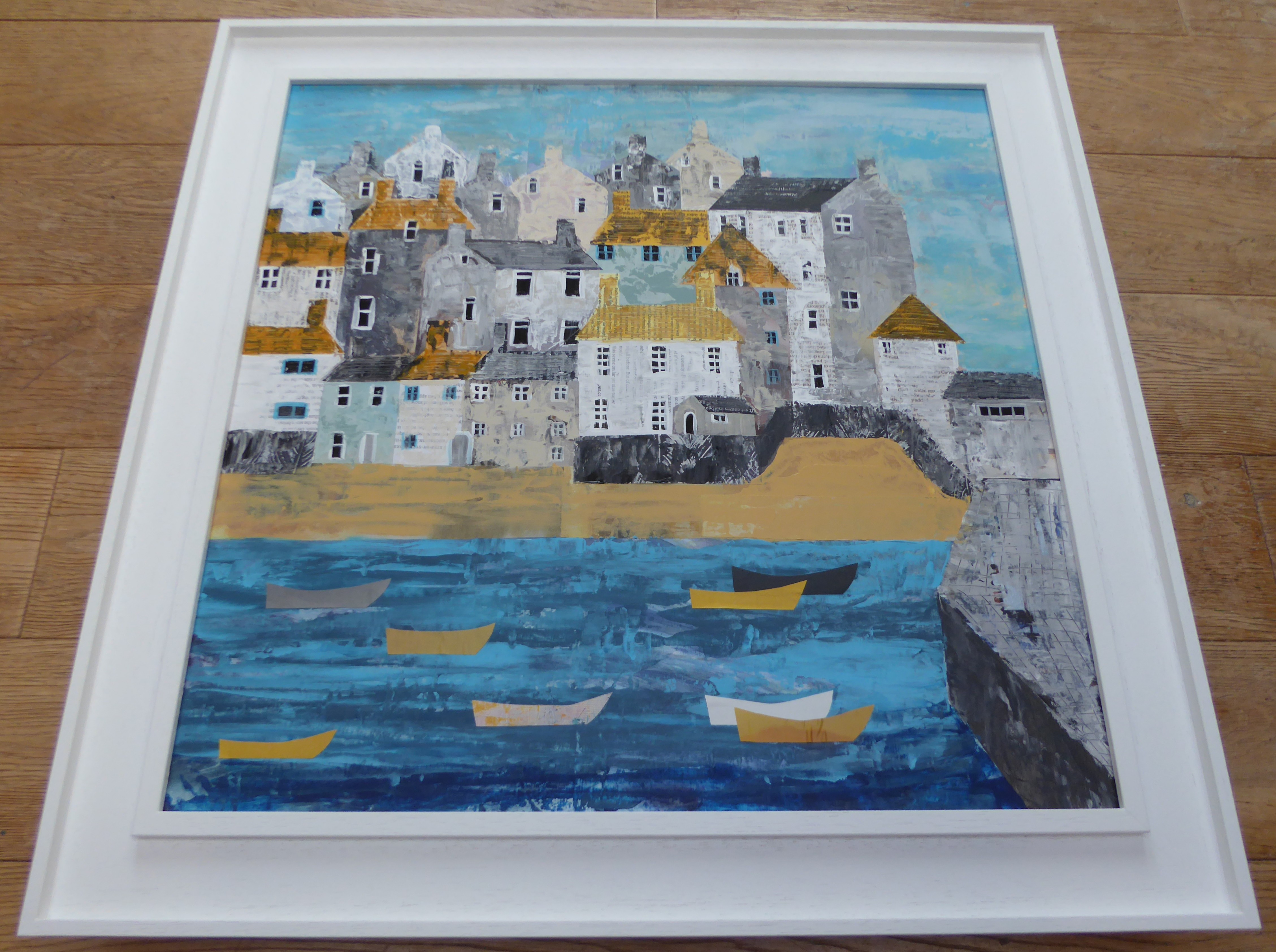 Mixed media on board, white beech wood frame, ready to hang, 61cm x 61cm x 2cm